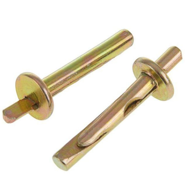 Он представляет из себя распорный клин с металлическим стержнем с насечкой (для клина) и большой плоской шляпкой с отверстием.