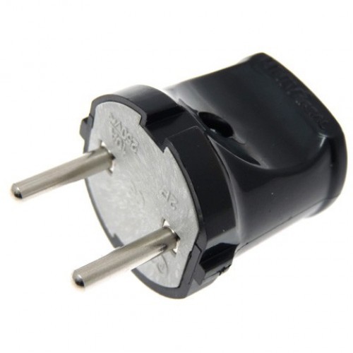 Вилка электрическая без заземления, черная, 6А, 250В (еврослот) UNIVersal A0113 – электроустановочный аксессуар, устройство подключения бытовых электроприборов к сети. Тип "евро", с заземлением. Разборная. Изготовлена из пластмассы, устойчивой к оплавлению, ударопрочная, износостойкая.
