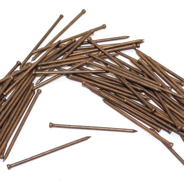 Гвозди 25х1,4 (80г) финишные бронзовые - применяется для монтажа изделий из дерева и пластика, например, для крепления паркета, тонких реек, вагонки, т.е.облицовочных работ. Имеет небольшую овальную шляпку, что позволяет сделать такой гвоздь почти невидимым после того как его забили. Головка финишного гвоздя утапливается в древесине.