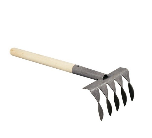 Грабли витые ГВ-5 с деревянным черенком – стандартные грабли с коротким черенком и узким шагом зубьев. Небольшие размеры позволяют эффективно использовать данный инструмент в труднодоступных местах (под кустами, среди густо растущих растений). Грабли витые ГВ-5 изготавливаются из стали окрашенной эмалью или порошковой окраской которая надежно защищает их от ржавления и других возможных повреждений.