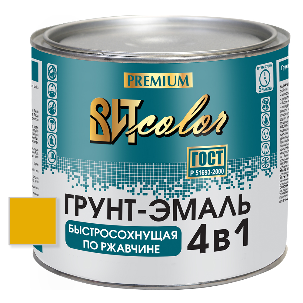 Грунт-эмаль по ржавчине желтая быстросохнущая ВИТ color 1,8 кг.