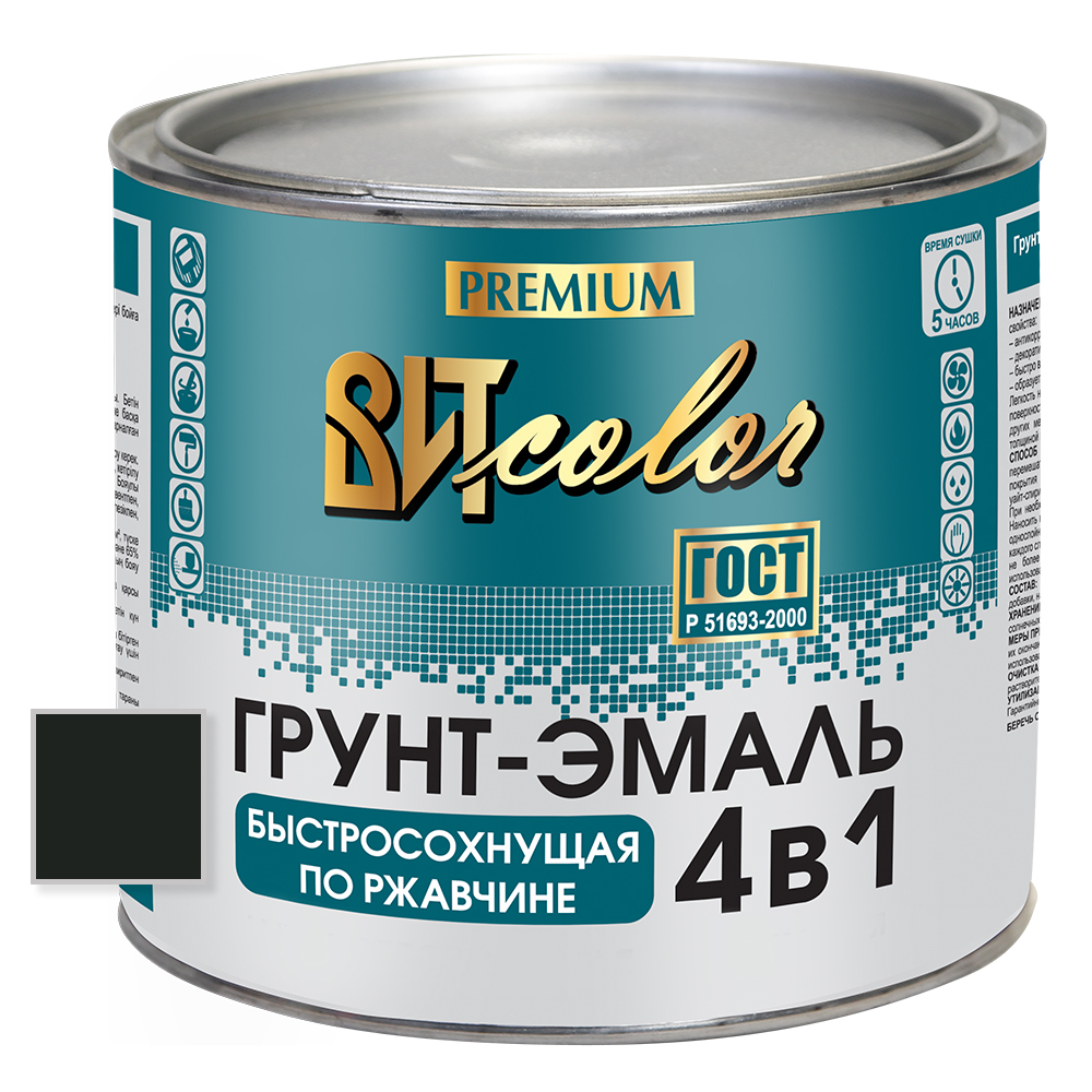 Грунт-эмаль по ржавчине черная быстросохнущая ВИТ color 1,8 кг.