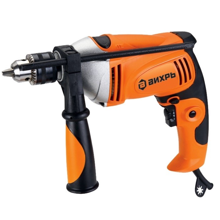 Дрель ударная ДУ-1100 (мощ.1100Вт, диам.сверления: сталь 10мм, бетон 13мм, дерево 25мм.,3000 об/мин. Мощность, Вт 1100; Число скоростей 1; Тип патрона ключевой; Вес, кг 2.3; Наличие реверса есть ; Max диаметр сверления (металл), мм 10; Мах диаметр сверления (дерево), мм 25; Регулировка оборотов да; Наличие подсветки нет; Мах диаметр сверления (бетон), мм 13. Ударная дрель ВИХРЬ ДУ-1100 - электрический инструмент, используемый для сверления отверстий в различных материалах. Представленная модель является самой мощной и производительной среди дрелей данной серии. Для сверления отверстий на заданную глубину предусмотрен специальный ограничитель. На корпусе предусмотрены вентиляционные отверстия для охлаждения рабочего механизма. Клавиша пуска оснащена колесиком для регулировки частоты вращения. Рукоятка имеет мягкую накладку и выступ в нижней части для надежного и удобного захвата дрели во время работы. Ударный механизм облегчает сверление бетона и кирпичной кладки.