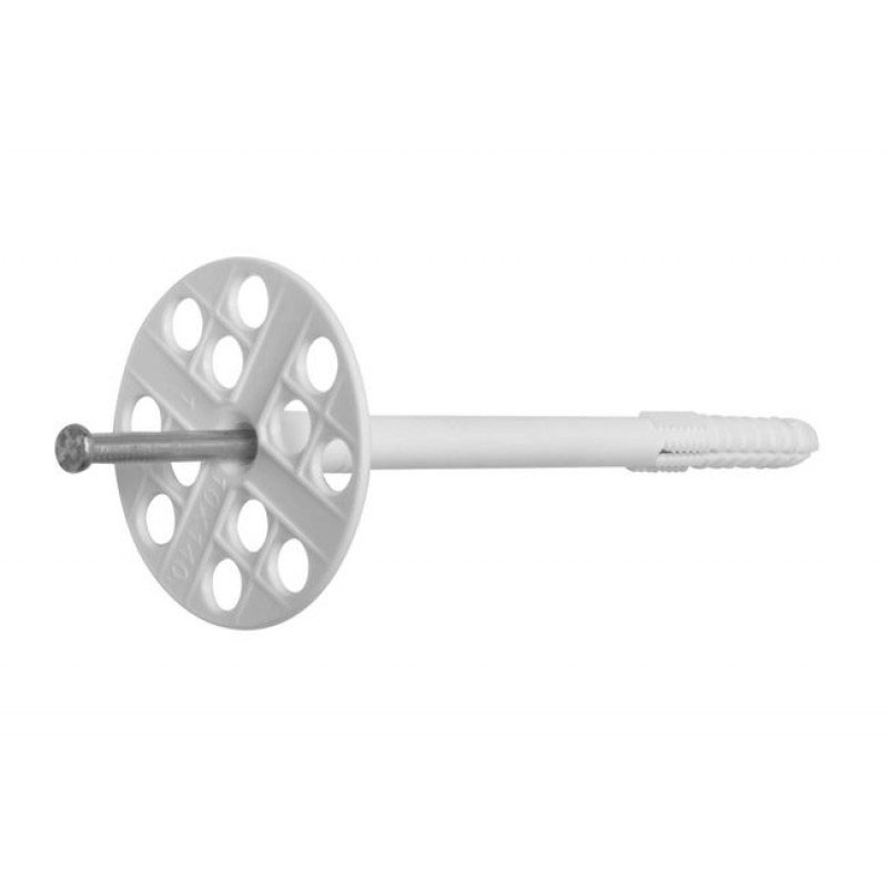 Дюбель 10х200 для изоляции с метал. гвоздем Используется для крепления мягких и твердых изоляционных материалов, таких как: минеральная вата, стекловата, полистирол, полиуретан, пенопласт и других материалов к основанию из бетона, легкого бетона, полнотелого и пустотелого кирпича, а также пенобетон