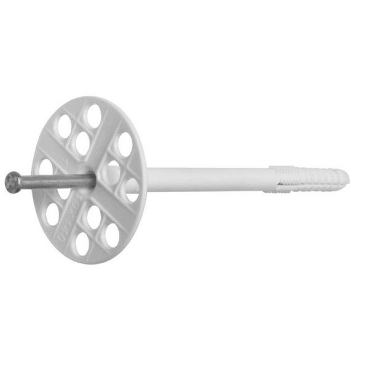 Используется для крепления мягких и твердых изоляционных материалов, таких как: минеральная вата, стекловата, полистирол, полиуретан, пенопласт и других материалов к основанию из бетона, легкого бетона, полнотелого и пустотелого кирпича, а также пенобетон