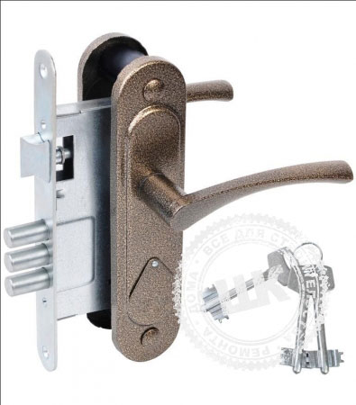 Замок Врезной с ручкой на планке ЗВ 9,2-01 ОМЕГА бронза