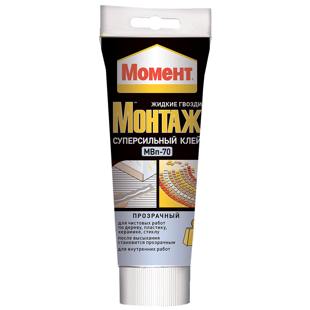 «Момент Монтаж Суперсильный Прозрачный МВп-70 - монтажный клей для чистовых работ по дереву, пластику, керамике и стеклу.