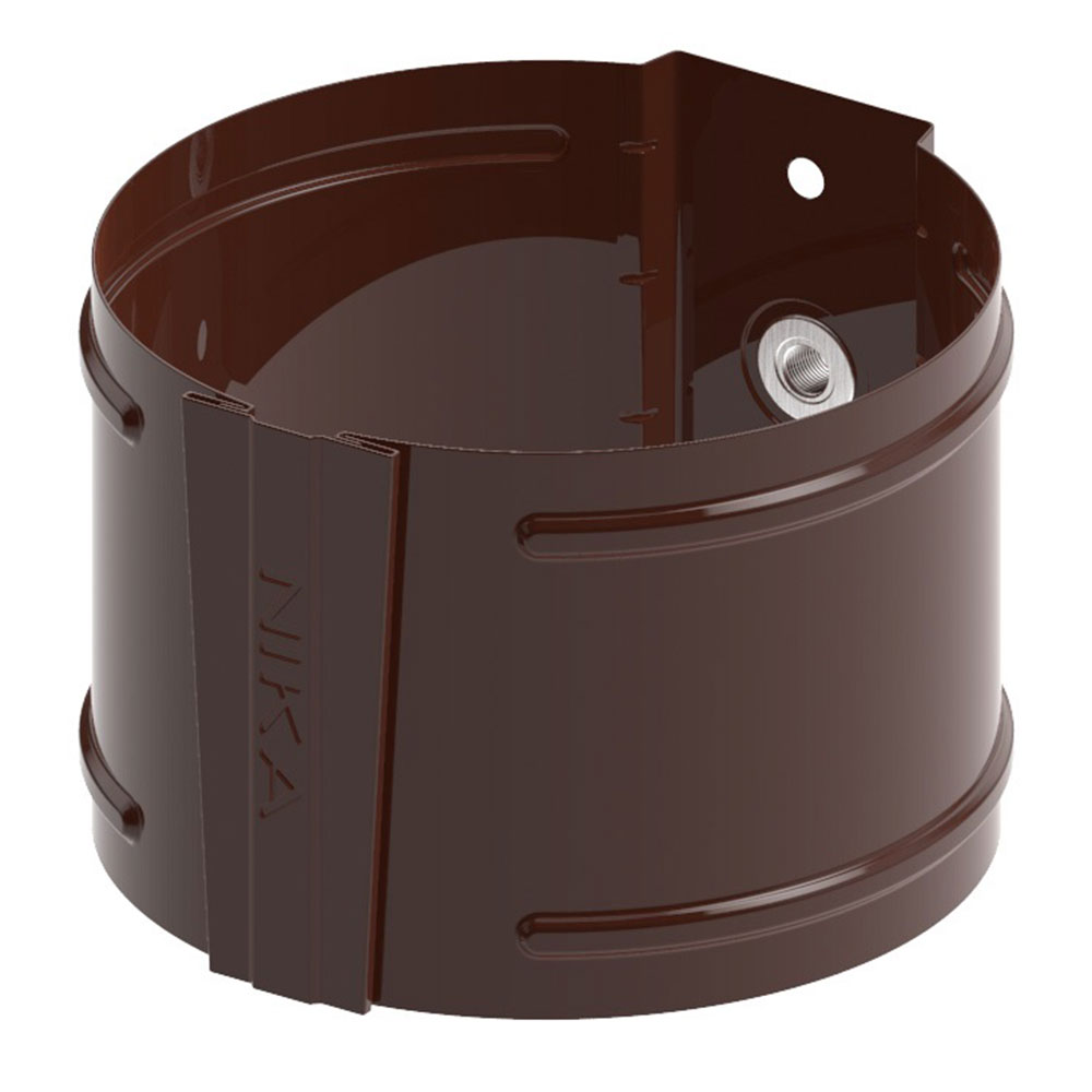 Крепеж трубы @100 оцинк. коричневый.Крепление используется для монтажа водосточных труб. С помощью шпильки-шурупа вся конструкция крепко прикручивается к стене или лобовой доске. Позволяет сделать качественный водосток, устойчивый к сильному ветру и ливням.