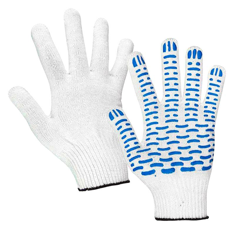 Перчатки х/б с ПВХ покрытием СУПЕР ЛЮКС белые.Перчатки хлопчатобумажные повышенной плотности с точечным ПВХ напылением.Предназначены для защиты рук от механических воздействий и истирания при строительных, погрузочно-разгрузочных и сельскохозяйственных работах.Купить в нашем магазине.