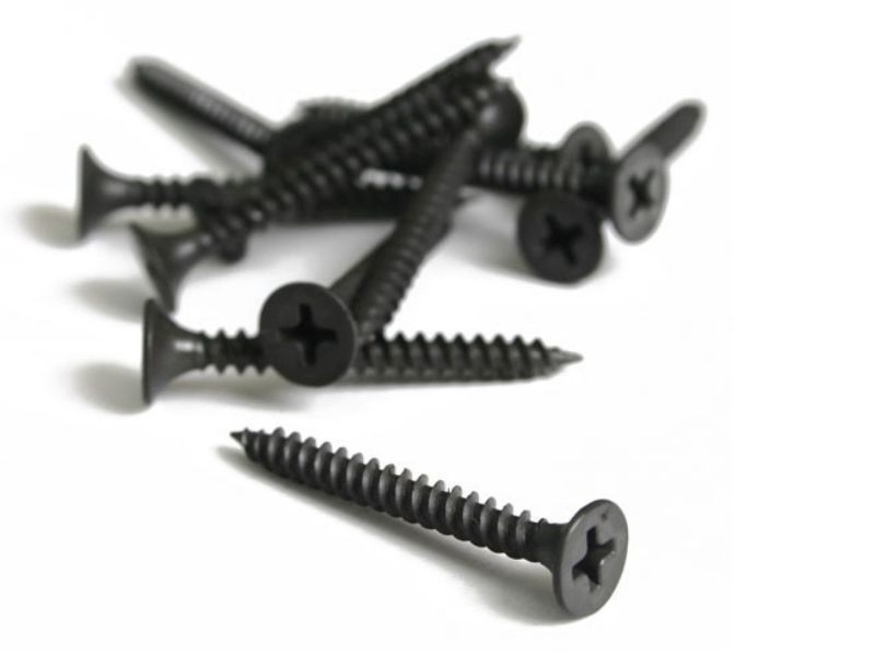 Саморез изготовлен из стали, поверхность фосфатирована. Наконечник самореза острый,