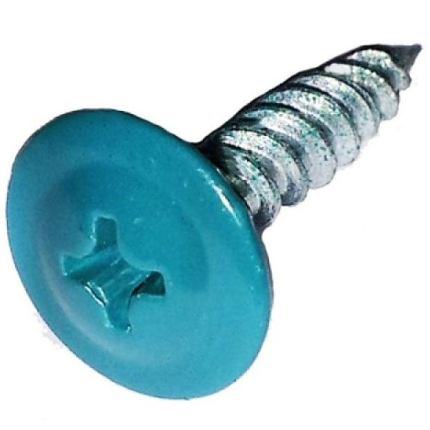 Саморез 4,2х19мм с пресс-шайбой, наконечник острый (100 шт) бирюза RAL5021 Саморез с пресс-шайбой, наконечник острый. Головка с пресс-шайбой, крестообразный шлиц, острый наконечник, частая резьба. Оцинкованный. Используется для крепления листов металла до 0,9 мм, а также оргалита, алюминиевых профилей, фанеры и тому подобного к деревянным основаниям и носителям (без предварительного сверления). Благодаря шляпке с пресс-шайбой саморезы дают максимальную площадь крепления, что повышает надежность соединения.
