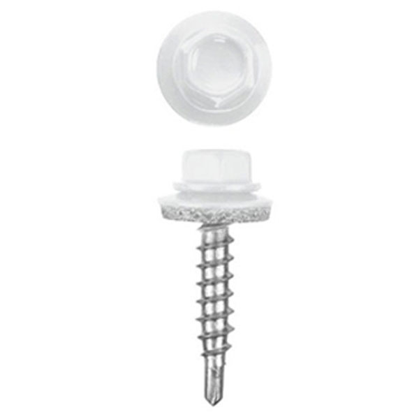 Саморез для металлочерепицы 5,5х19 мм (250 шт), белый RAL9003. Монтаж кровли, установка снегозадержателей, элементов обшивки и водоотводящих конструкций, монтаж забора из металлопрофиля, изготовление навесов и теплиц, в том числе из сотового поликарбоната.