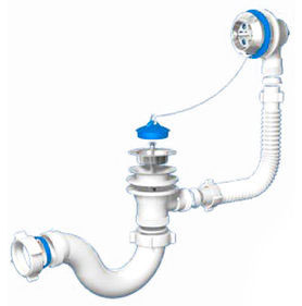 Сифон Ани для ванны с выпуском и переливом 1 1/2" Е150.Применяются для слива воды из ванн в сточные трубы, а также служат в качестве водяного затвора для предотвращения проникновения неприятных запахов из канализации в помещение. Изготовлены из специальной пластмассы белого цвета и нержавеющей стали.Купить в нашем магазине.