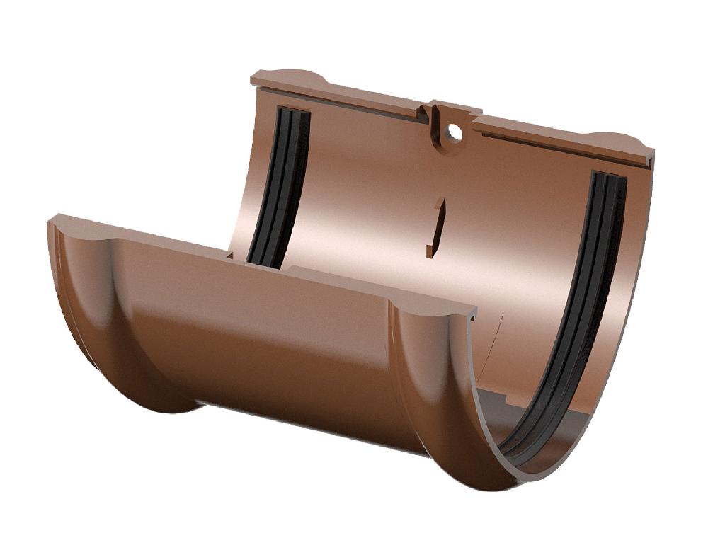 Предназначен для соединения водосточных желобов между собой. За счет наличия резинового уплотнителя обеспечивается герметичное соединение.