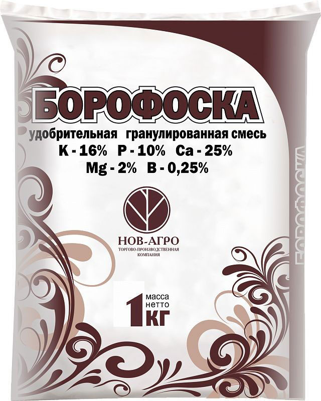 Удобрение Борофоска 1кг.Борофоска — ценное фосфорно-калийное удобрение с добавкой бора, предназначена для применения на всех типах почв под все культуры с целью повышения урожайности и улучшения качества выращенной продукции. Добавка бора полностью устранит болезни, вызываемые его недостатком (отмирание точек роста и молодых частей растений, уменьшение количества цветков, опадению завязей; гниль сердечка у свеклы, бурая или красная гниль у цветной капусты и др.)Купить данный товар Удобрение Борофоска 1кг можно в нашем интернет-магазине,по цене указанной выше.