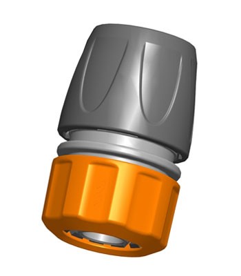 Для закрепления коннектора на шланг используется цанговое соединение - самое надёжное соединение, исключается подкапывание в месте соединения даже при сильном напоре. Шланг надевается на внутренний штуцер, при затягивании внешней гайки "лепестки"цанги смыкаются, и шланг диаметром 3/4 надёжно фиксируется.