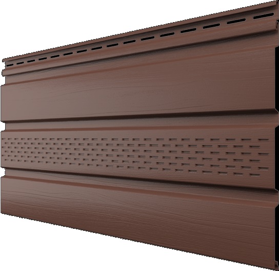 Частично перфорированный софит обеспечивает необходимый забор воздуха в подкровельное пространство и наименьшее попадание пыли. Используются на карнизных свесах.