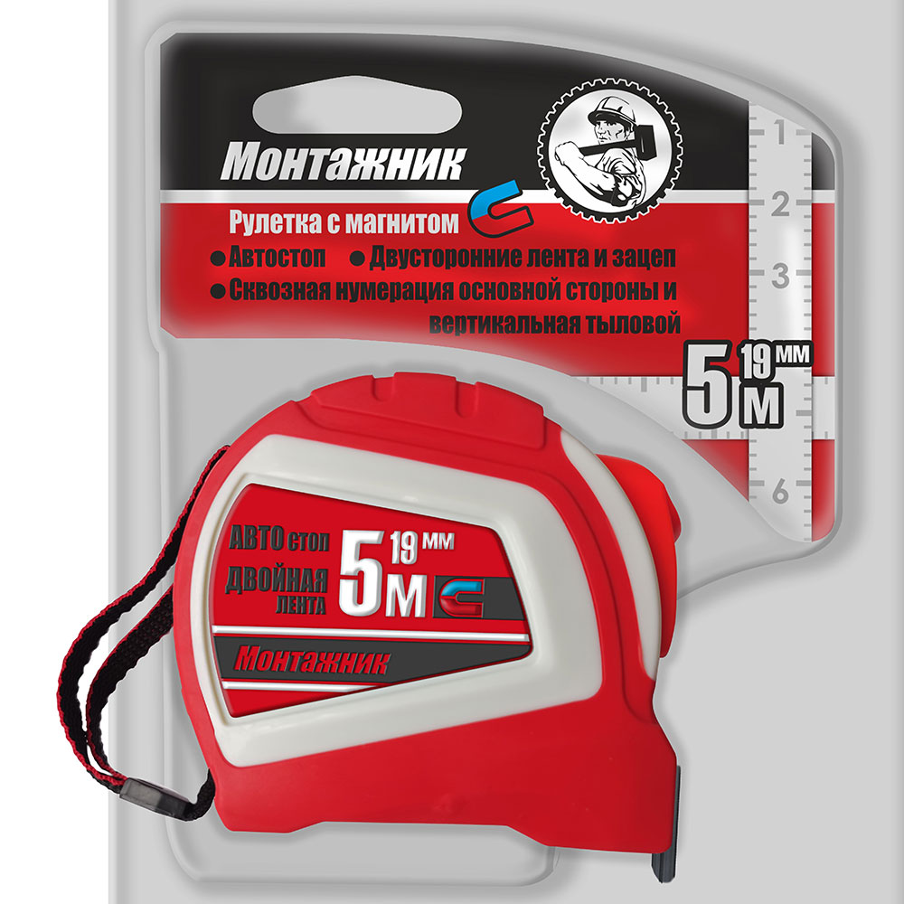 Рулетка 7,5м х 25мм с автостопом и магнитом Монтажник
