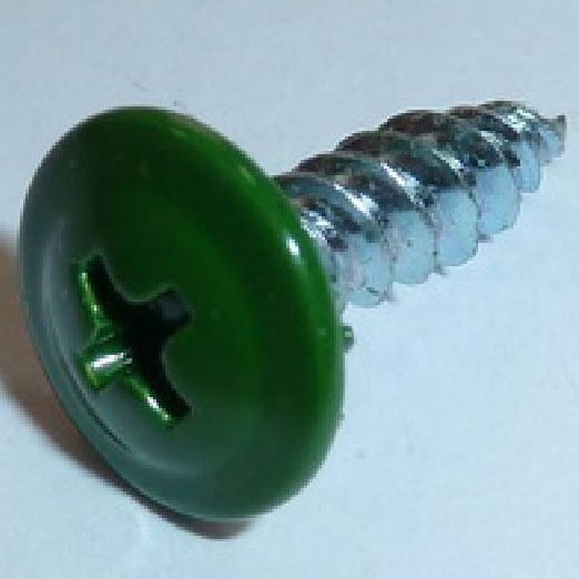 Саморез 4,2х19мм с пресс-шайбой, наконечник острый (100 шт) зеленый RAL6005 Саморез с пресс-шайбой, наконечник острый. Головка с пресс-шайбой, крестообразный шлиц, острый наконечник, частая резьба. Оцинкованный. Используется для крепления листов металла до 0,9 мм, а также оргалита, алюминиевых профилей, фанеры и тому подобного к деревянным основаниям и носителям (без предварительного сверления). Благодаря шляпке с пресс-шайбой саморезы дают максимальную площадь крепления, что повышает надежность соединения.