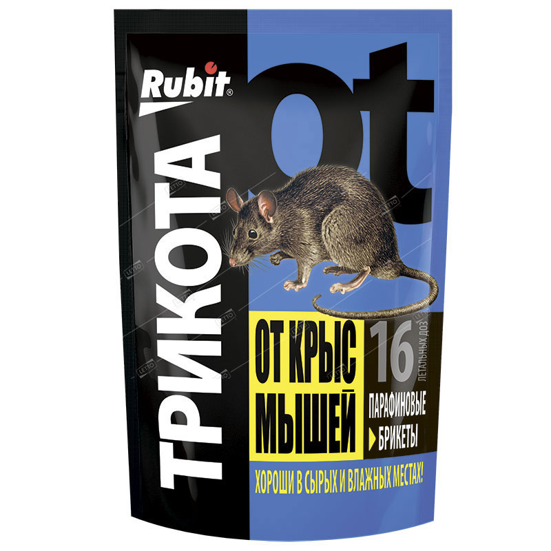 Парафиновые брикеты разработаны для применения во всех влажных средах. Эффективно уничтожают грызунов в садах , огородах, погребах, подвалах, канализационных сетях и подземных сооружениях, где обычные приманки перестают действовать. Парафин предохраняет и сохраняет эффективность формулы в течении длительного времени.