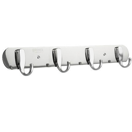Крючок для полотенца на планке, 4 шт, нерж. хромированная