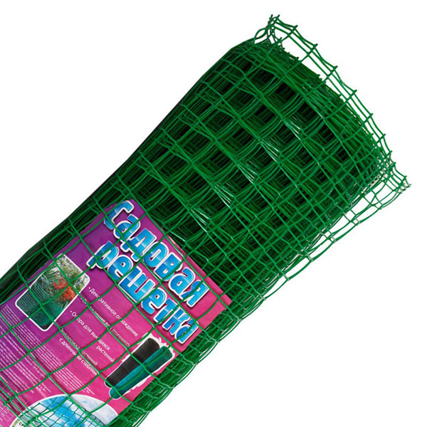 Садовая решетка, размер ячейки 50х50 мм, высота рулона 1,0 м, длина рулона 20 м, из полиэтилена используется для поддержки растений или как ограждение для вольера.