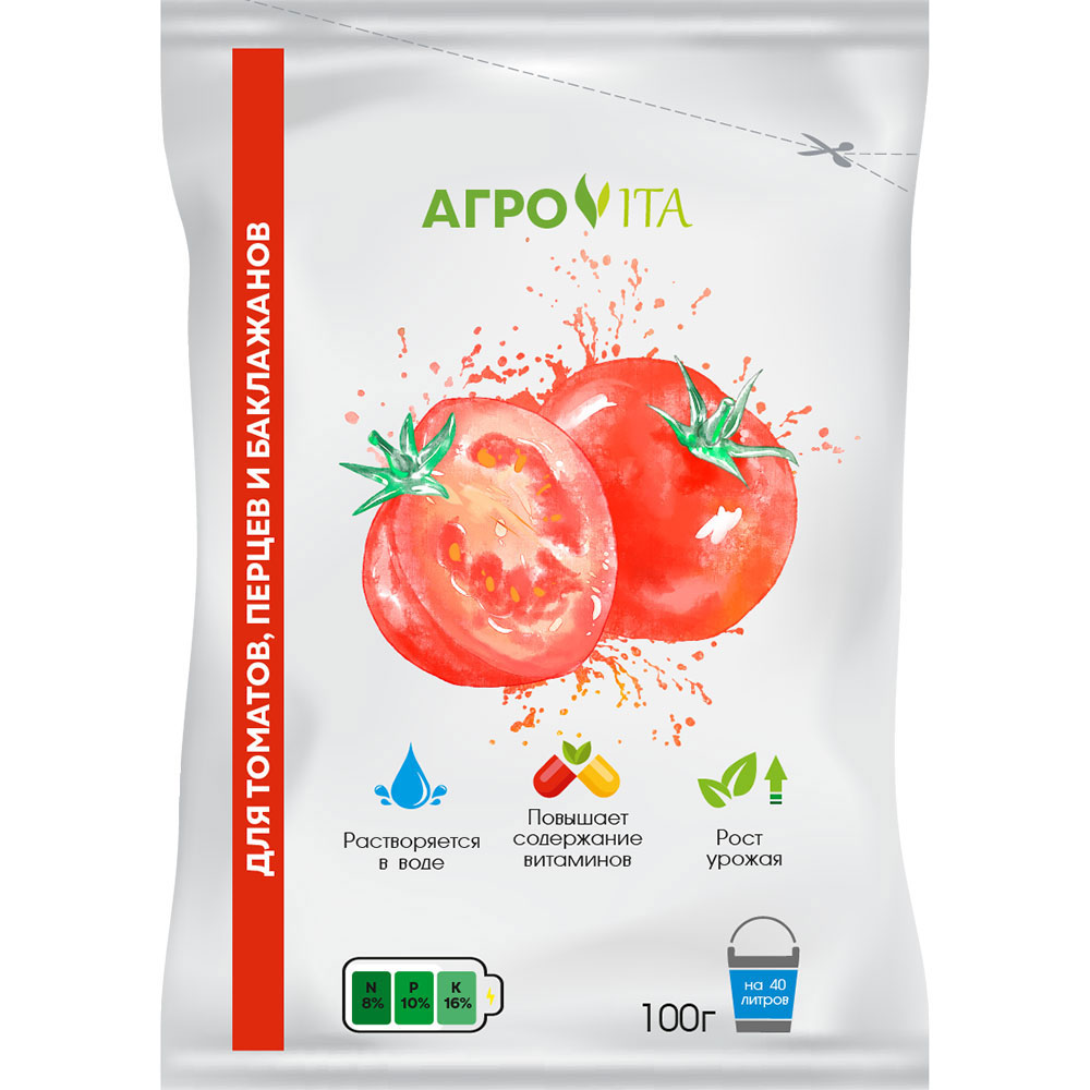 Высокоэффективное водорастворимое комплексное удобрение. Предназначено для полива под корень (корневая подкормка) и опрыскивания (внекорневая подкормка) томатов, перцев и баклажанов