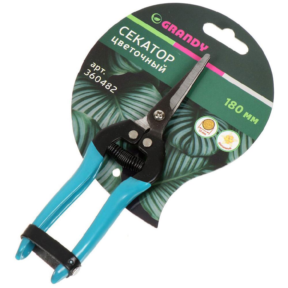 Цветочный секатор с прямым резом, обрезиненными рукоятками и петлевым фиксатором, расположенным на конце одной из рукояток. Предназначен для ухода за цветами и растениями. Режущие лезвия изготовлены из инструментальной стали У8, остро заточены и имеют оксидированное покрытие для защиты от коррозии.