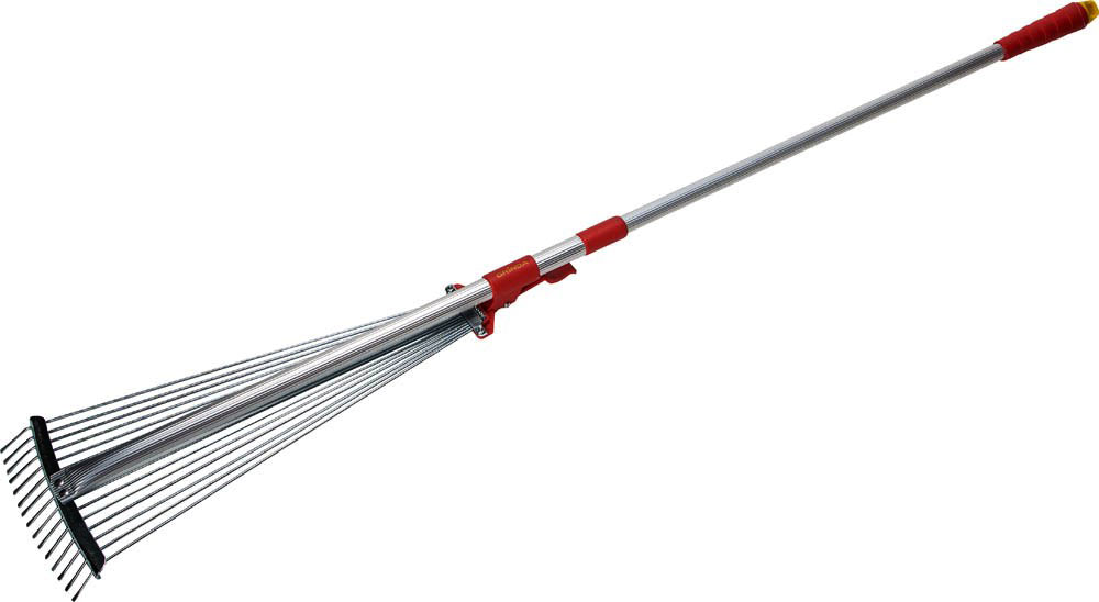 Грабли веерные раздвижные проволочные 15 зубьев с алюм. ручкой с фиксатором №2 (500мм) отличный инструмент для уборки мусора и опавшей листвы, а также прочесывания газонов.