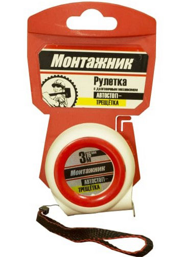 Рулетка 3м х 16мм с автостопом-трещеткой Монтажник