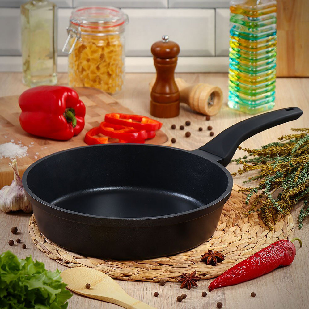 Сковорода оснащена удобной эргономичной ручкой;