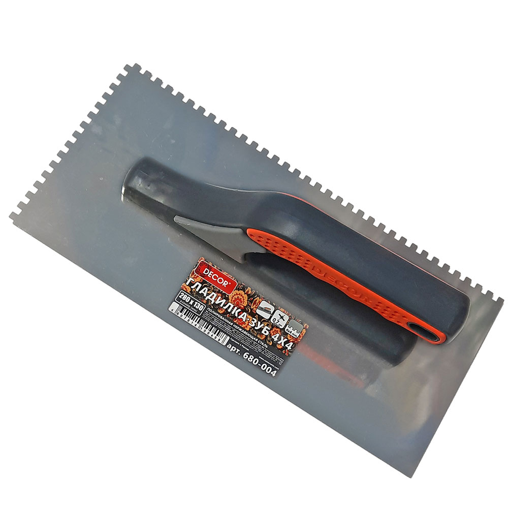Гладилка DECOR 3К, 280х130мм, нерж., зуб 4х4мм, 0,7мм