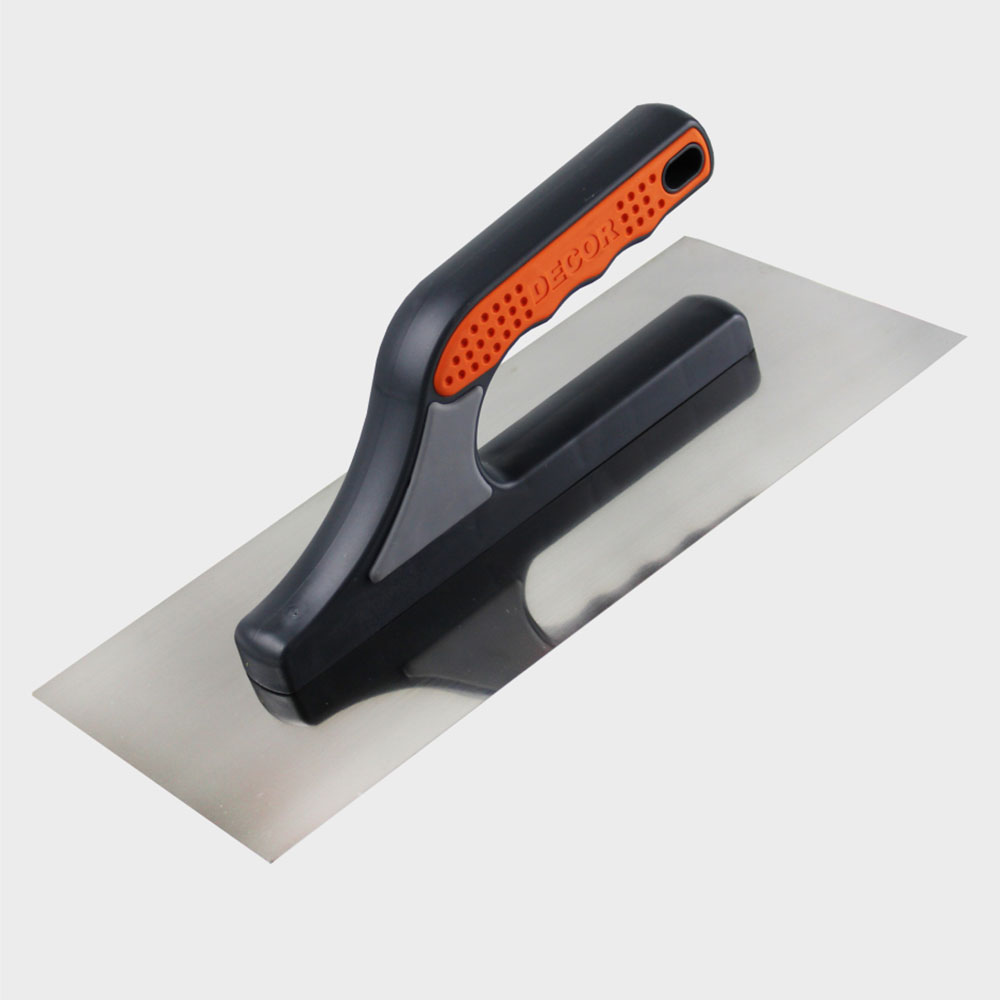 Гладилка DECOR 3К, 280х130мм, прямая, нерж., 0,7ммГладилка для нанесения и распределения клея для плитки, кафеля и керамогранита. Удобная прорезиненная ручка облегчает работу с раствором.
