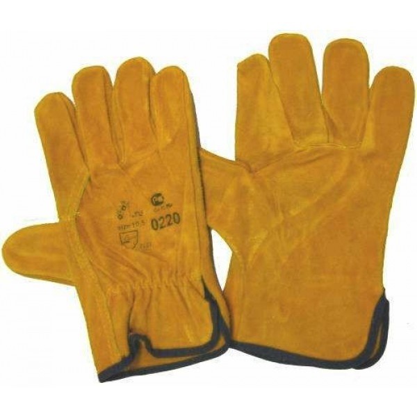 Перчатки из кожи КРС желтого цвета. Кожа мягкая, толщиной 1,2 мм (+/- 0,1), сорт А. На запястье резинка. Перчатки предназначены для защиты рук от ОПЗ, истирания, обеспечивают высокий комфорт, рекомендованы для продолжительного ношения, при работе с инструментом, для водителей.