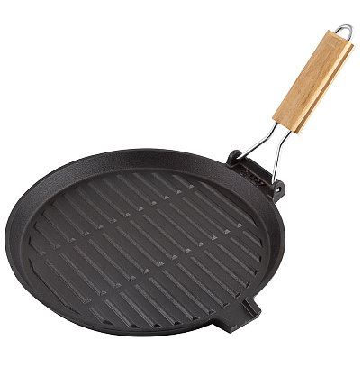 Сковорода-гриль чугунная с деревянной складной ручкой,