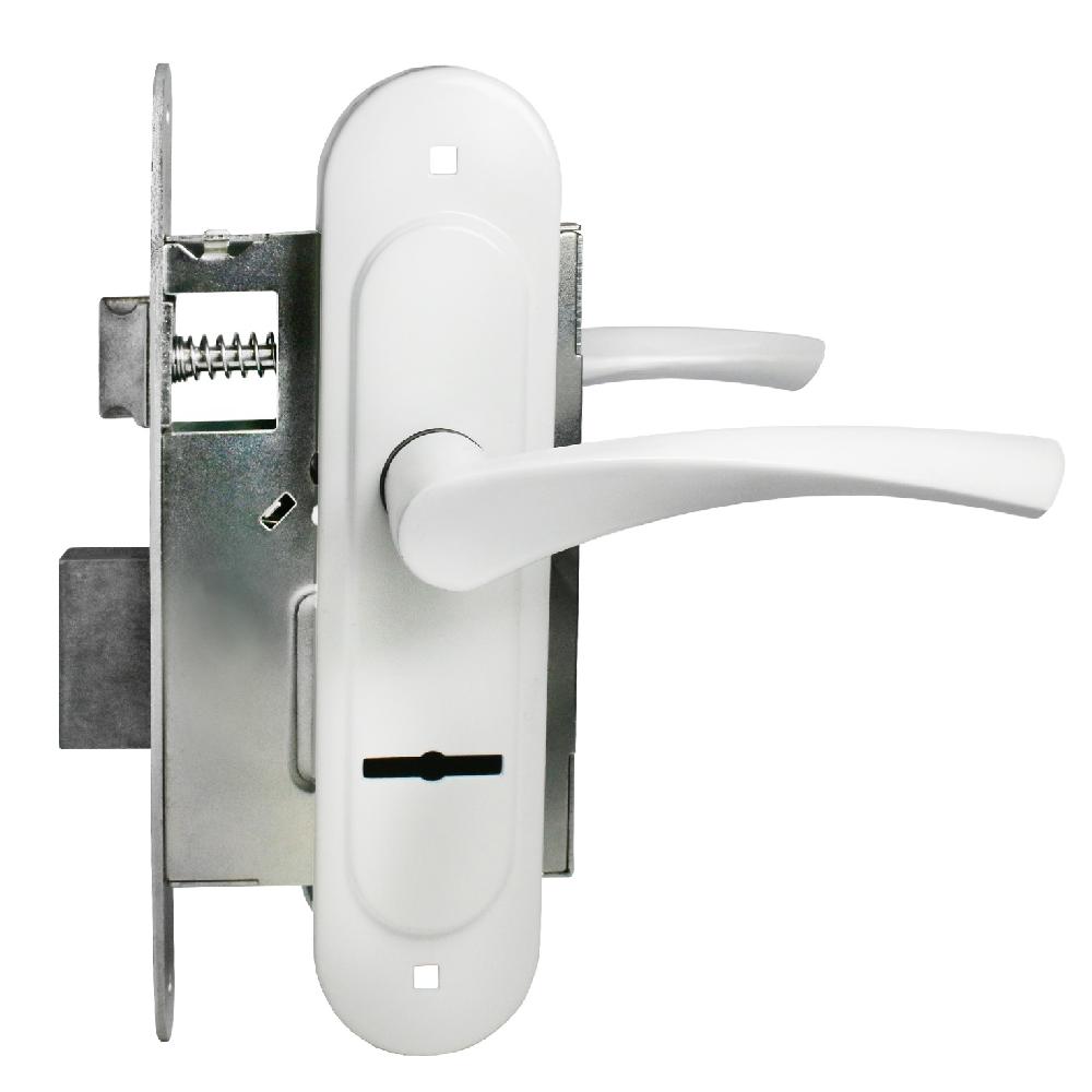 замок Врезной с ручкой на планке ЗВ 9-4,07 ПТИМАШ белый, сувальдный, прямоугольный.ригель, 3 ключа