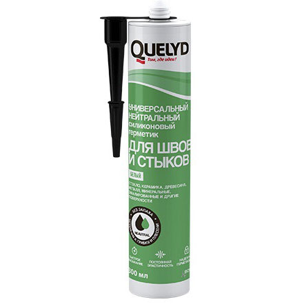 Quelyd «Универсальный нейтральный силиконовый герметик ДЛЯ ШВОВ И СТЫКОВ» — однокомпонентный нейтральный силиконовый герметик. Отверждается за счет реакции с влагой воздуха.