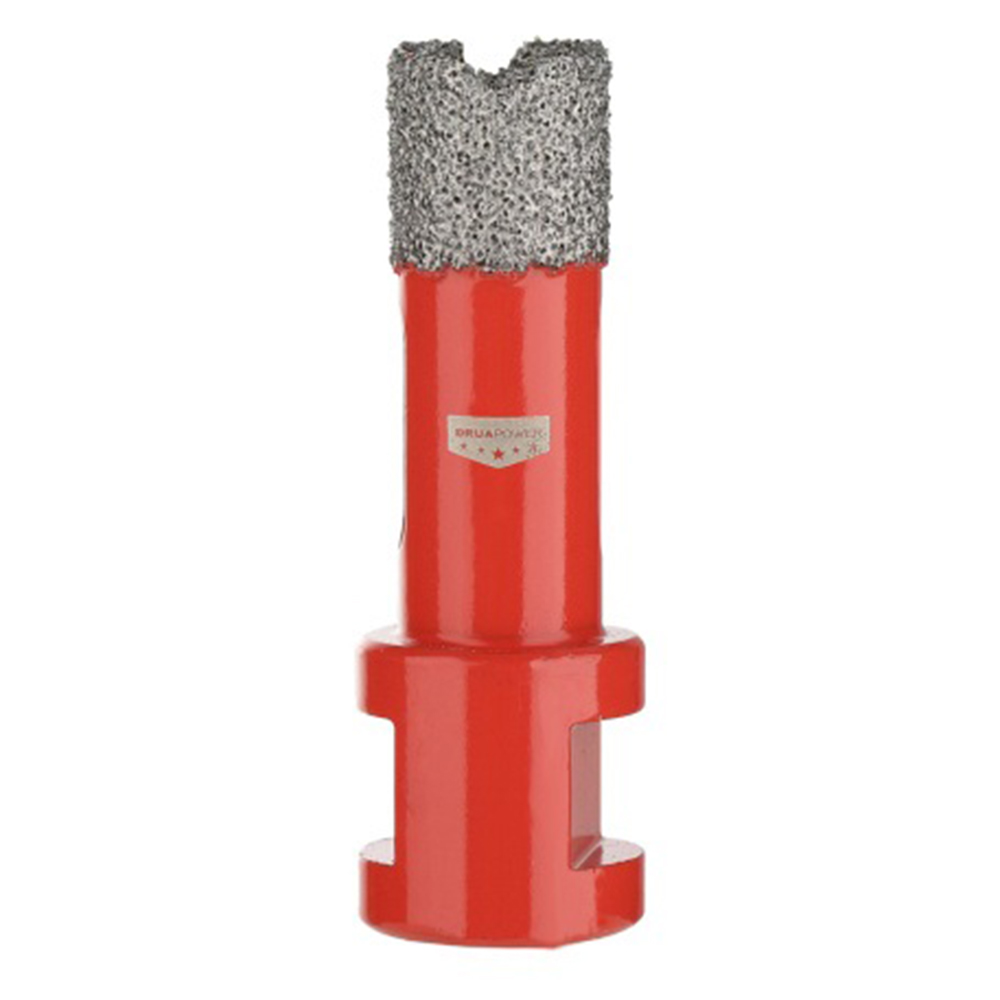 Алмазные коронки P.I.T. AMAS18 серии DRUA предназначены для сверления отверстий в керамограните, натуральном и искусственном камне, керамике, кирпиче и мраморе. Благодаря широкой алмазной кромке, выполненной по технологии вакуумного спекания алмазов, коронка имеет высокий ресурс и скорость сверления отверстий в материале. Хвостовик с внутренней резьбой M14 позволяет использовать коронки с угловыми шлифовальными машинами. Возможно использование коронок как для сухого, так и для мокрого сверления. Использование охлаждающей жидкости позволяет увеличить срок службы коронки и скорость работы.
