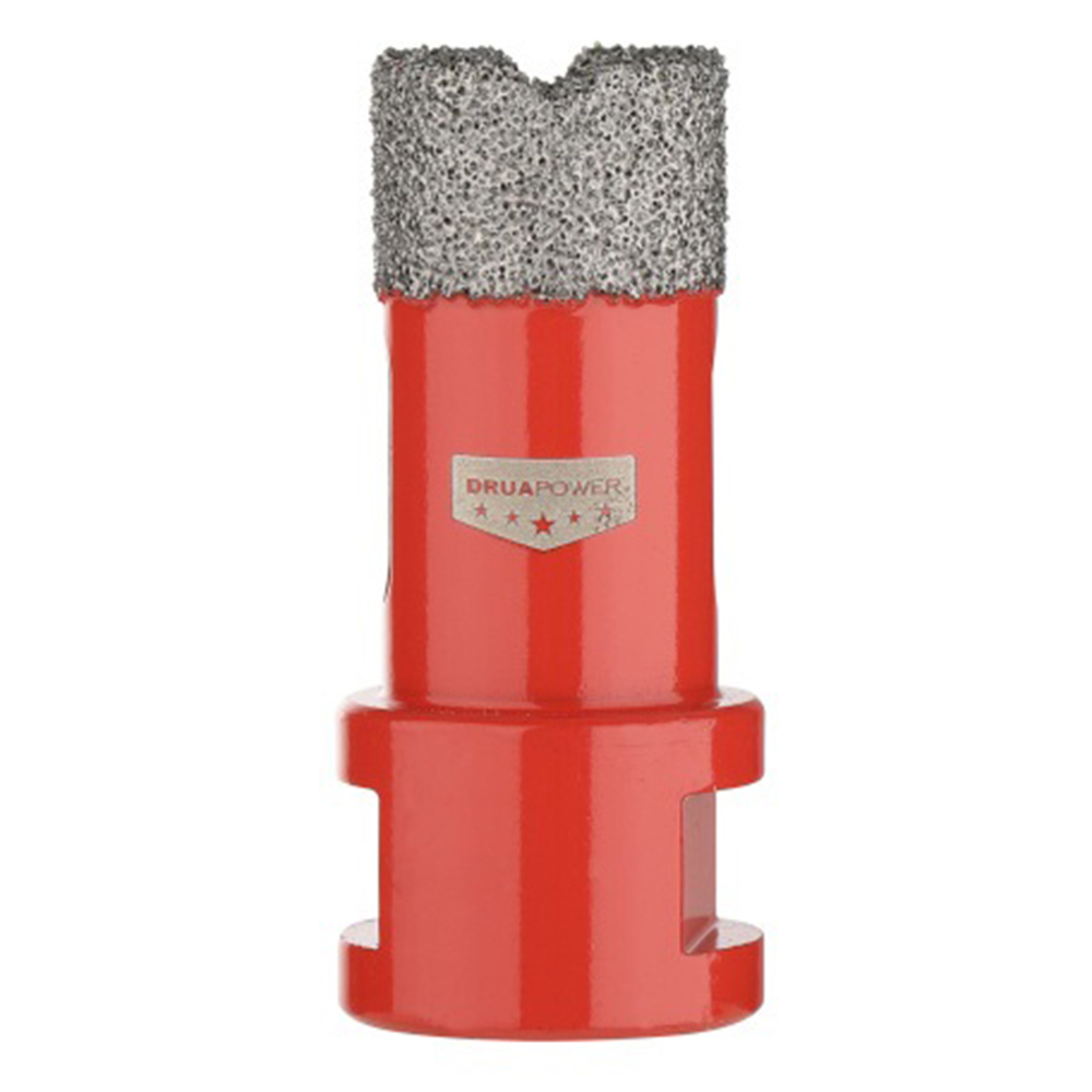 Алмазные коронки P.I.T. AMAS18 серии DRUA предназначены для сверления отверстий в керамограните, натуральном и искусственном камне, керамике, кирпиче и мраморе. Благодаря широкой алмазной кромке, выполненной по технологии вакуумного спекания алмазов, коронка имеет высокий ресурс и скорость сверления отверстий в материале. Хвостовик с внутренней резьбой M14 позволяет использовать коронки с угловыми шлифовальными машинами. Возможно использование коронок как для сухого, так и для мокрого сверления. Использование охлаждающей жидкости позволяет увеличить срок службы коронки и скорость работы.