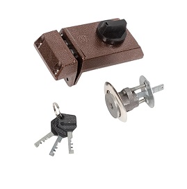 Замок накладной ЗНД-1АД дисковый, 2 цилиндр.ригеля, личинка-автомат, 3 ключа, медь.