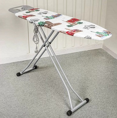 Гладильная доска Perilla Сити 223712 имеет стол на металлической сетке, а также хлопковый антипригарный чехол, который, к тому же, отлично пропускает пар. Модель обладает подставкой и силиконовыми антипригарными вставками: на неё можно безбоязненно поставить утюг, чтобы ненадолго отлучиться. Дополнительное удобство обеспечит встроенная розетка.
