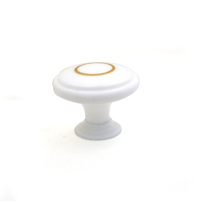 Ручка-кнопка пластиковая, РДП-01-1, белая, с золотым кольцом.