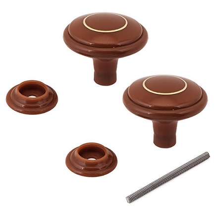 Ручка-кнопка, пластик. РДП-01-3, темное дерево, золотое кольцо.