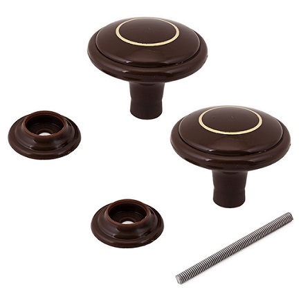 Ручка-кнопка дверная, пластик. РДП-01-6, шоколад, золотое кольцо.