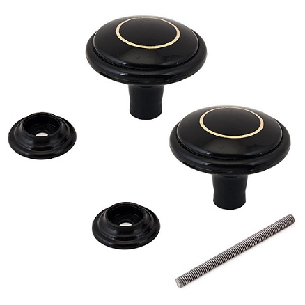 Ручка-кнопка пластиковая, РДП-01-7, чёрная, с золотым кольцом.