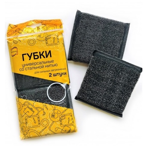 Губка универсальная В ПОРЯДКЕ со стальной нитью (чёрная), 2 шт./уп.