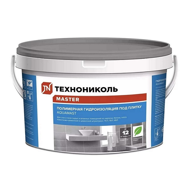 Гидроизоляция полимерная AquaMast под плитку – готовая к применению пастообразная мастика на основе водной дисперсии полимеров для гидроизоляции пола и стен внутри помещений, в том числе под облицовку плиткой с устройством обогреваемых тёплых полов.