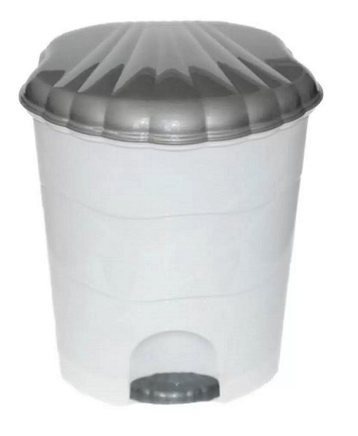 Контейнер для мусора пластик, 18 л, кругл, педаль, плав крыш, бел,сер, Violet, 151801 Изделие для накопления бытовых и пищевых отходов. Имеет элегантную крышку в форме ракушки, открывающуюся ножной педалью. Состоит из трех частей: внешнего корпуса с крышкой, внутреннего ведра с ручкой, педали с приводным механизмом. Внутреннее ведро удобно вынимается из основного корпуса для выноса накопившегося мусора.
