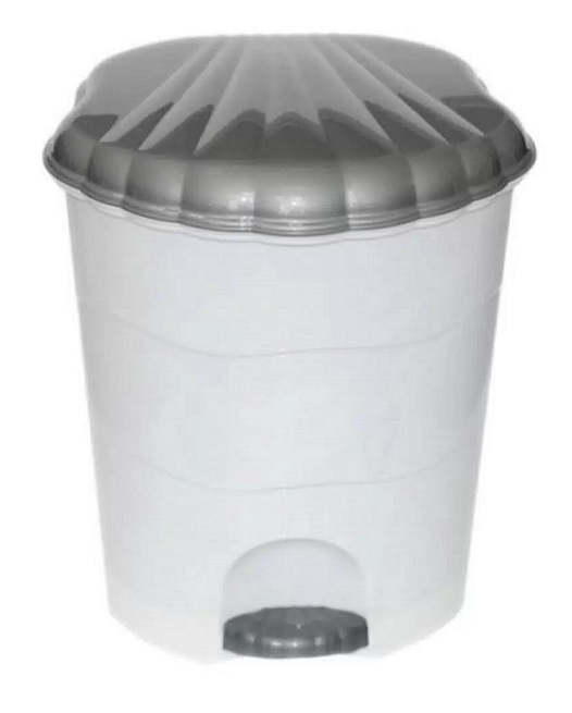 Контейнер для мусора пластик, 11 л, кругл, педаль, плав крыш, бел,сер, Violet Изделие для накопления бытовых и пищевых отходов. Имеет элегантную крышку в форме ракушки, открывающуюся ножной педалью. Состоит из трех частей: внешнего корпуса с крышкой, внутреннего ведра с ручкой, педали с приводным механизмом. Внутреннее ведро удобно вынимается из основного корпуса для выноса накопившегося мусора.