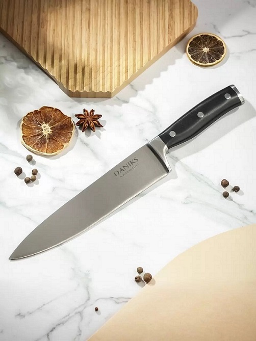 Ищете надежный и стильный инструмент для приготовления изысканных блюд? Кухонный нож Daniks Black станет незаменимым помощником на вашей кухне. Этот шеф-нож впечатляет не только своим современным дизайном, но и высокими характеристиками, которые удовлетворят даже самых требовательных кулинаров.